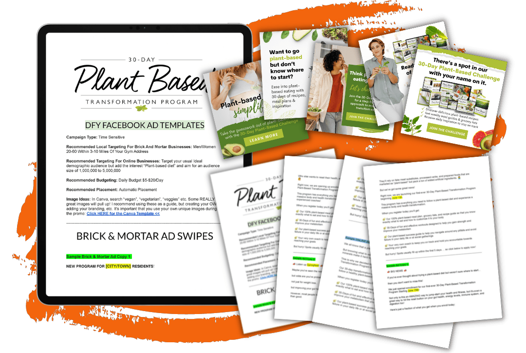 Have the budget to run ads? Amazing! You’ll find a fresh set of ads for the 30-Day Plant-Based Challenge to spread the word and get those “ka-chings!” emails blowing up your inbox all day long.