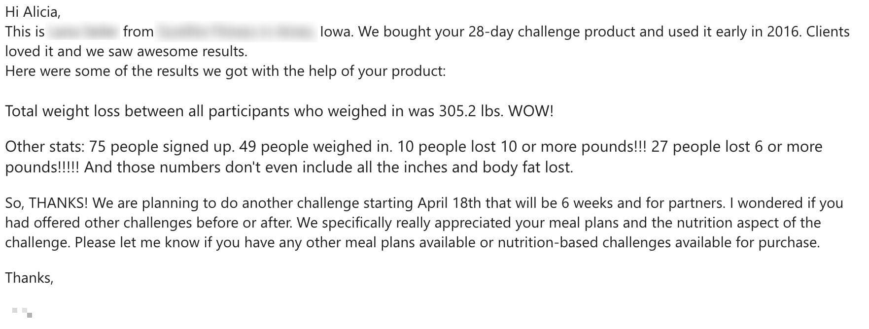 Then you have to create grocery lists, create the success manual, and write daily emails to keep your members motivated and inspired.