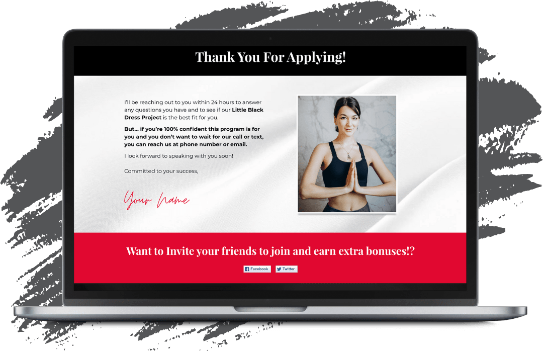 Your “thank you” page is the perfect place to start getting your clients excited about the LBD Project! There are 2 thank you pages, so you're all set whether you bring clients in using an app OR bring them straight to purchase!